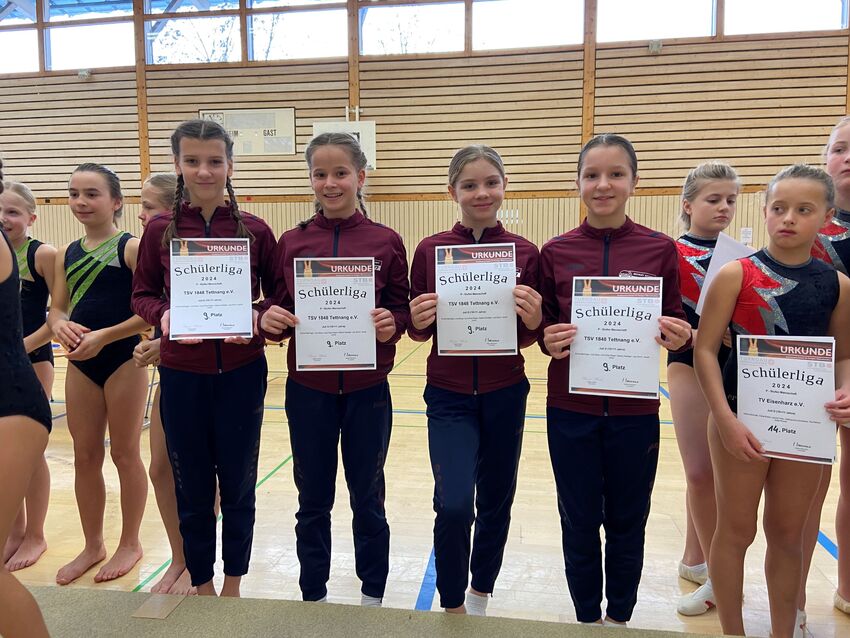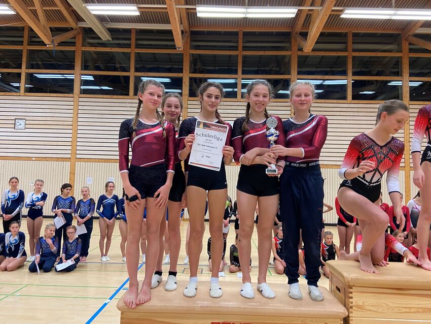 In Reute bei Bad Waldsee ging am 23. November die Schülerliga der Kunstturnerinnen zu Ende. Nach dem ersten Wettkampf am 9. November in Ailingen konnte von den vier Teams des TSV Tettnang vor allem die C-Jugend überzeugen, die nochmal einen großen Sprung nach vorne machte und dieses Mal Platz zwei in der Tageswertung erreichen konnte.