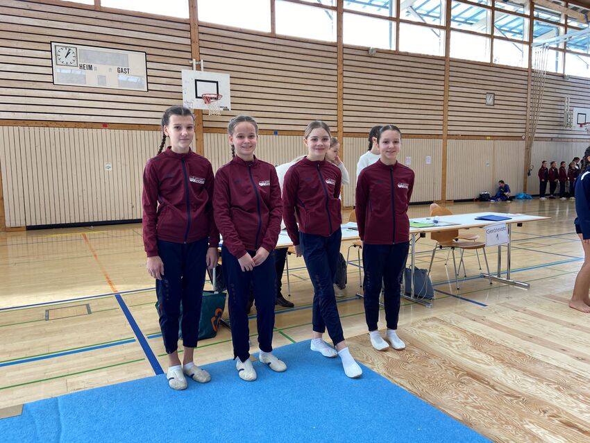 Von ihrer besten Seite zeigte sich die C-Jugend in Reute. Im ersten Wettkampf in Ailingen mit Platz fünf nicht wirklich zufrieden, konnten sich die Turnerinnen in Reute enorm steigern. Geräte-übergreifend sehr gute Leistungen, gekrönt von einem überragenden Auftritt am Sprung sorgten am Ende dafür, dass man sich auf Rang zwei verbessern konnte. Im Gesamt-Ergebnis konnte man damit noch auf Treppchen gelangen und bekam verdientermaßen einen schönen Pokal überreicht. Lara Heckenberger, Sofia Wrazidlo, Dafina Veseli, Dania Mitter und Nele Müller mit ihren Trainern Oliver Schneider und Larissa Bentele sorgten für diesen tollen Erfolg.