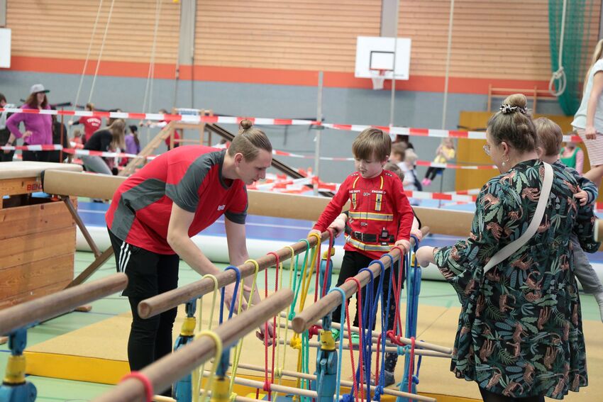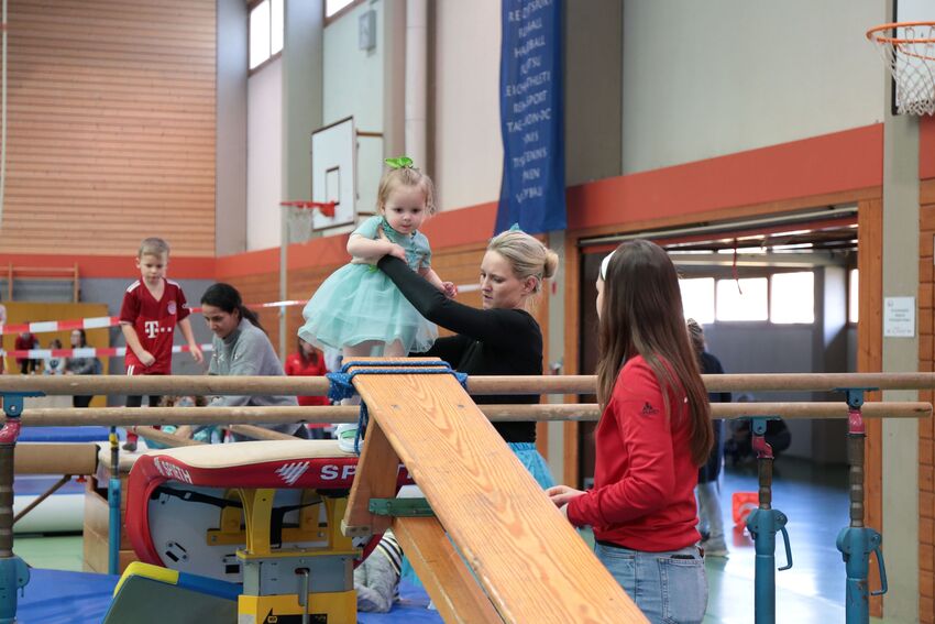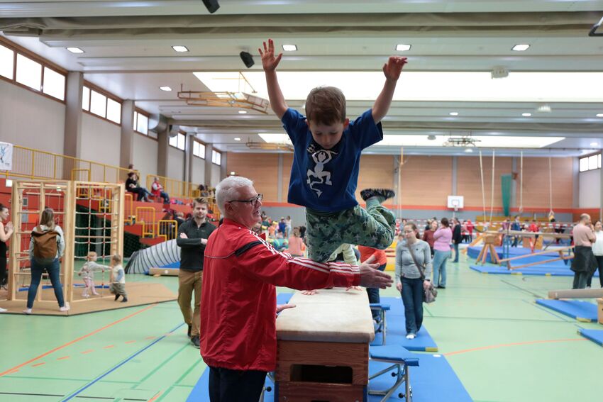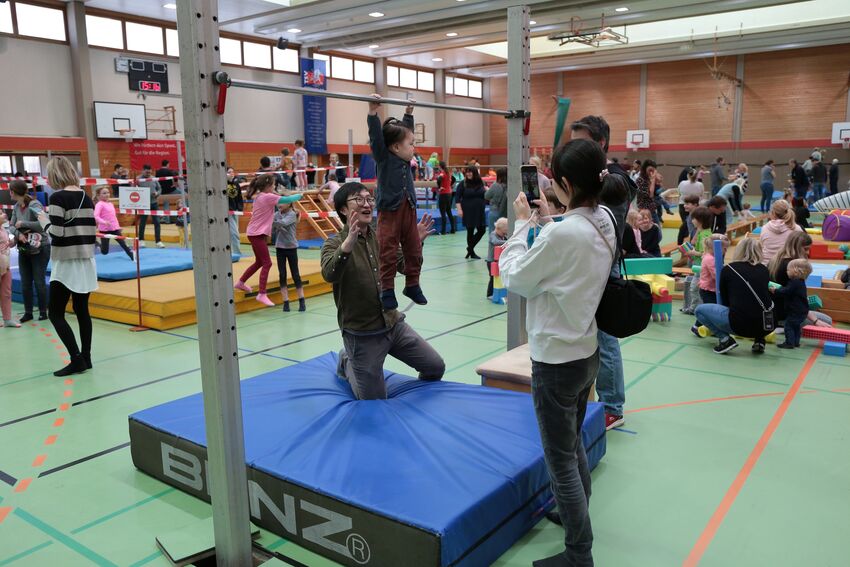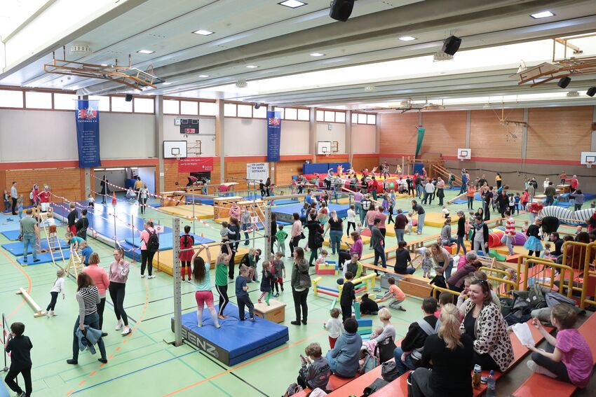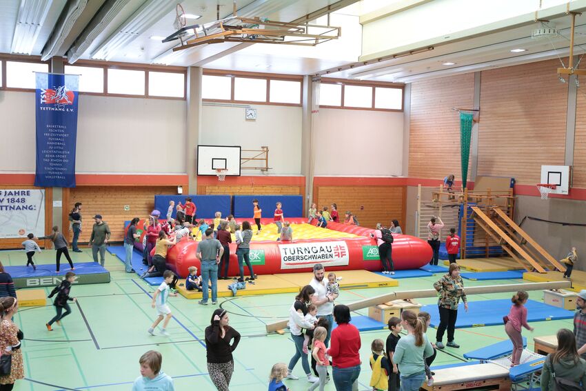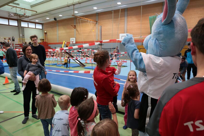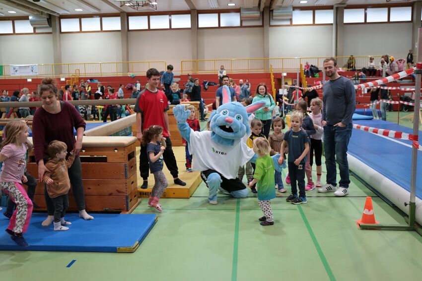 Äußerst zufrieden waren die Organisatoren mit den Teilnehmerzahlen. "Mit über 450 Mädchen und Jungs hatten wir so viele Kinder in der Halle, wie noch nie. Vielleicht liegt das ja an der zurückliegenden, langen Corona-Pause.“, bemerkte Geschäftsführer Oliver Schneider und war begeistert über die gut besuchte Halle: "Die ganzen Kinder hier in der Halle zu erleben, wie sie einen Riesenspaß haben, ist natürlich großartig." Große Freude bei den Kindern rief auch der Besuch von Stargast "Turni" hervor, dem Maskottchen des Schwäbischen Turnerbundes. Der blaue Plüschhase nahm sich viel Zeit und spielte mit den Kindern und zeigte auch das eine oder andere turnerische Kunststück.