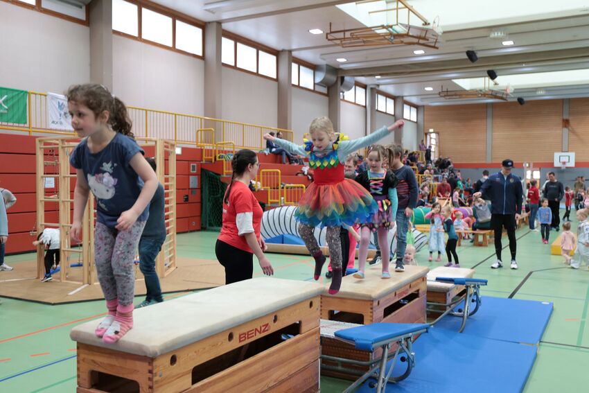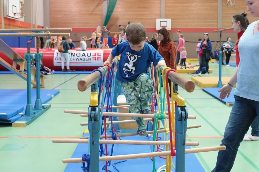 Klettern, schwingen, hüpfen, balancieren, rennen: Die Turner des TSV Tettnang verwandelte die Carl-Gührer-Halle am Fasnets-Sonntag und Rosenmontag in eine riesige Bewegungslandschaft. Überall waren tolle Turngeräte, soweit das Auge reichte, zum Drübersteigen oder Durchkriechen. Mini-Trampolin, Rutsche, Seile zum Schwingen, Airtrack - alles war vorhanden, was die Kinder brauchten, um sich auszutoben. Vor allem das neue Air-Tramp, das man vom Turngau Oberschwaben ausleihen durfte, erfreute sich großer Beliebtheit. Aber auch die Riesenschaukel, die Gruselhöhle und der Kletter-Parcours standen bei den Kindern hoch im Kurs. Für die Kleineren gabs einen extra für sie abgetrennten Spielbereich, in dem sie ungestört die verschiedenen Geräte erkunden konnten.