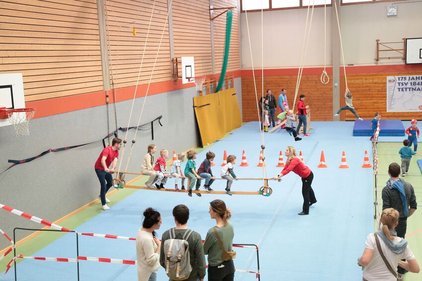 Die TSV-Turnabteilung hat im Rahmen des Vereinsjubiläums „175 Jahre TSV Tettnang“ über die Fasnetstage an zwei Nachmittagen alle Kinder zum Spielen, Turnen und auspowern in die Carl-Gührer-Halle eingeladen. Unter dem Titel "Fasnet im Turn-Dschungel" war in der Halle allerhand geboten, was die Kinderherzen höherschlagen ließ. Mehr als 450 Kinder nutzen das Angebot und verwandelten die Halle in ein riesiges Spielzimmer.