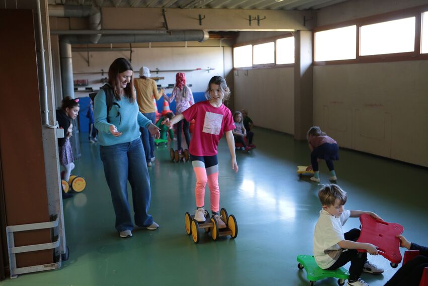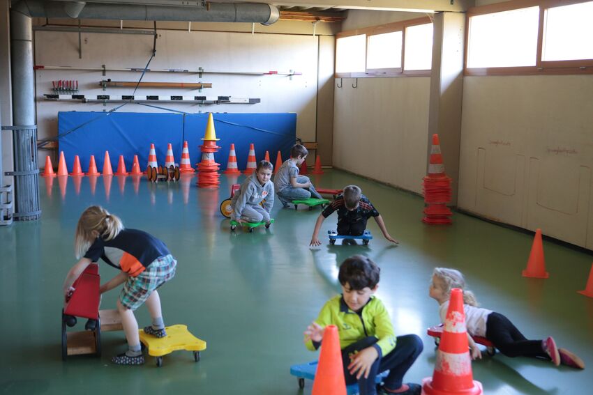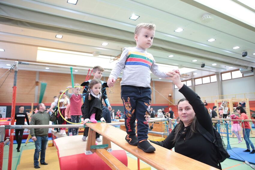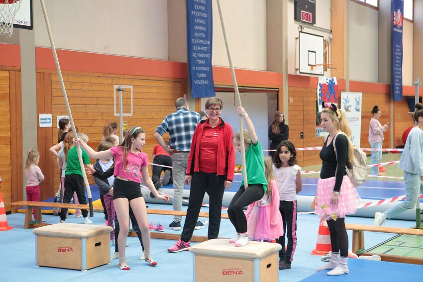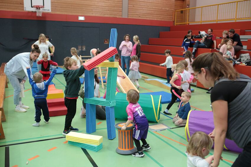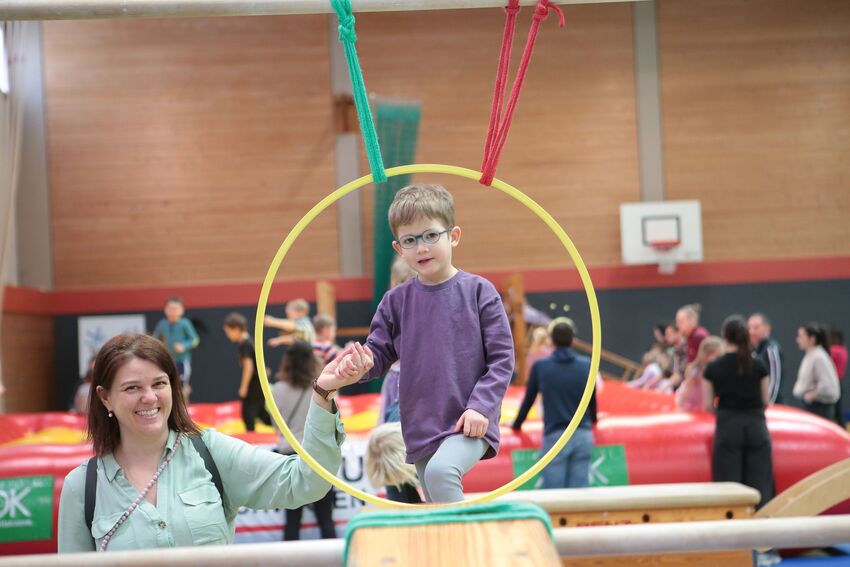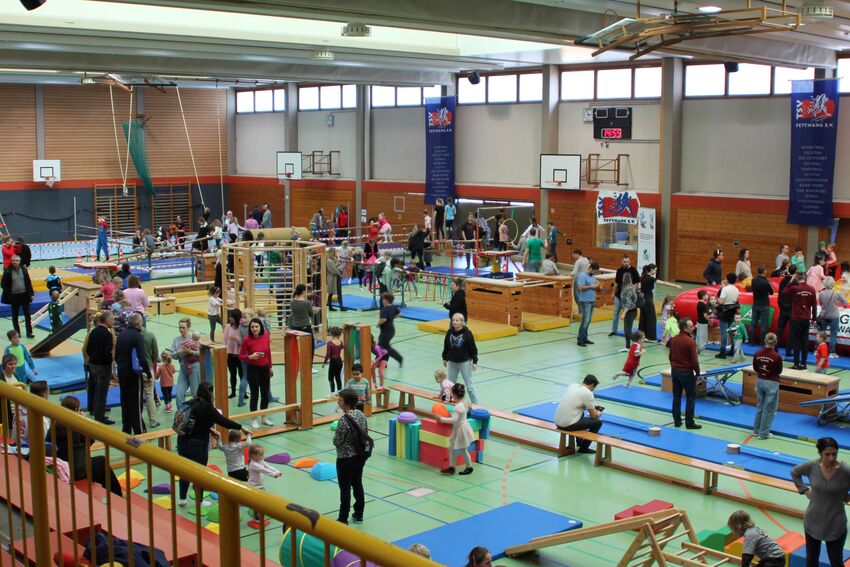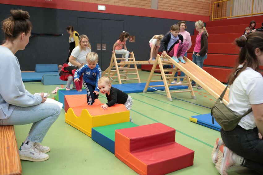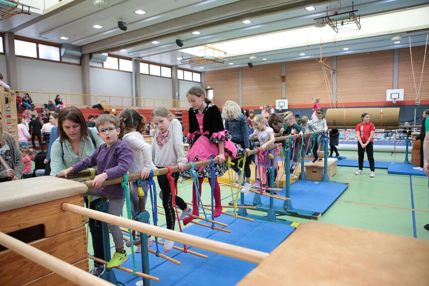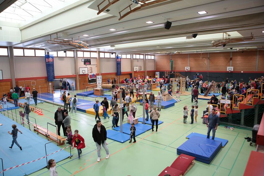 Klettern, schwingen, hüpfen, balancieren, rennen: Die TSV-Turnabteilung hatte die Carl-Gührer-Halle am letzten Fasnets-Wochenende in eine riesige Bewegungslandschaft verwandelt. Mini-Trampolin, Rutsche, Seile zum Schwingen, Airtrack - alles war vorhanden, was die Kinder brauchten, um sich auszutoben. Vor allem die Riesenschaukel, aber auch die Gruselhöhle und der Rollbrett-Parcours erfreuten sich großer Beliebtheit. Absoluter Renner war wieder das große AirTramp, das fast durchgehend voll besetzt war, während die kleinesten im für sie abgetrennten Spielbereich die verschiedenen Geräte erkundeten.