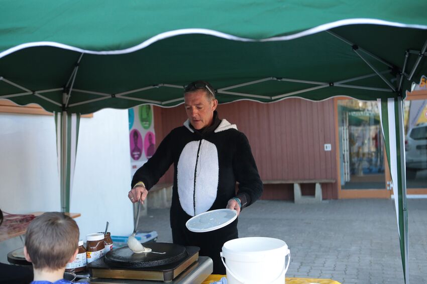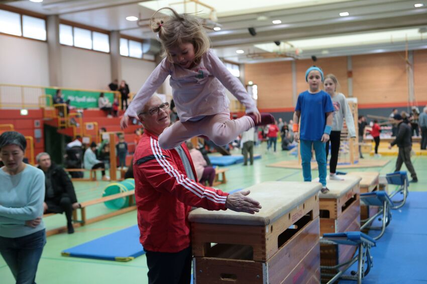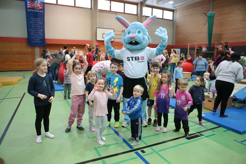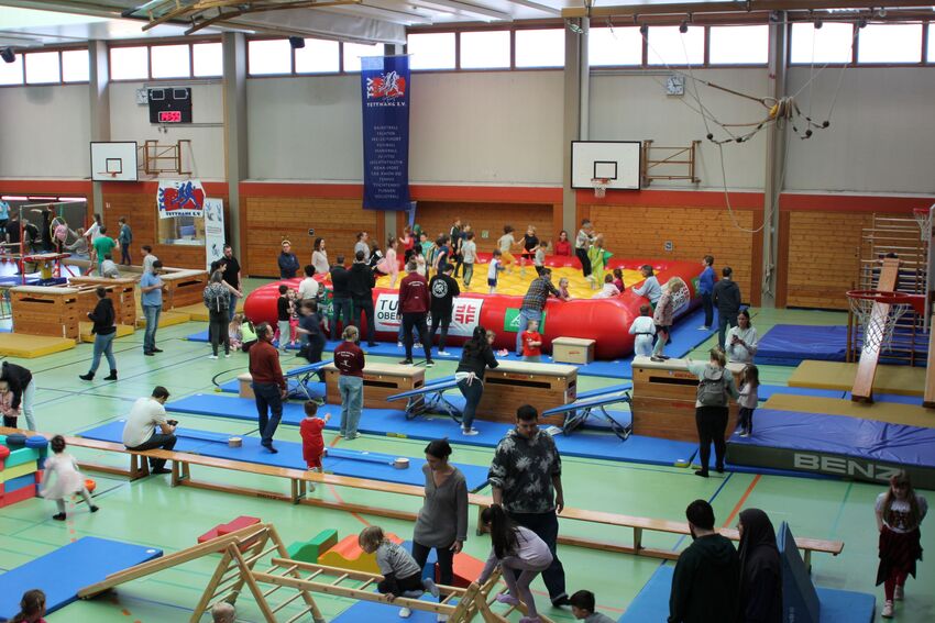Äußerst zufrieden waren die Organisatoren mit den Teilnehmerzahlen: "Wir freuen uns darüber, dass unsere Veranstaltung seit Jahren so gut angenommen wird", bemerkte Geschäftsführer Oliver Schneider und war begeistert über die gut besuchte Halle: "Mehr als 450 Kinder in der Halle, die einen Riesenspaß haben, ist natürlich großartig." Und das trotz durchgehend gutem Wetter und Sonnenschein, Wetterverhältnisse, die ja eigentlich nicht unbedingt zum Verweilen in einer Turnhalle einladen. Große Freude bei den Kindern rief auch der Besuch von Stargast "Turni" hervor, dem Maskottchen des Schwäbischen Turnerbundes. Der blaue Plüschhase nahm sich viel Zeit und spielte und tobte mit den Kindern. Tolle Unterstützung für den Geräteparcours gabs vom Turngau Oberschwaben. Auch für das "leibliche Wohl" sorgte die Turnabteilung während der beiden Tage: Es gab Kaffee, Kuchen und Kaltgetränke. Und Lars backte wieder fleißig Crepes, was sehr gut bei den kleinen und großen Gästen ankam.