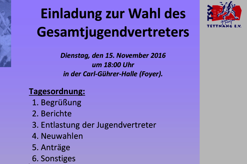 alle zwei Jahre wird im TSV Tettnang der/die Jugendvertreter/-in gewählt. In diesem Jahr steht die Wahl wieder an.