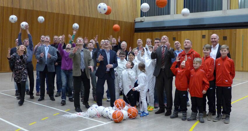 Auch die Nachbarschaften sowie schließlich die Stadtverwaltung habe viel dazu beigetragen, dass diese besondere Zeit gemeistert werden konnte. „Diese Flexibilität und der damit verbundene Gemeinsinn verdient Hochachtung“, so Wölfle. Die über 30 Fuß-, Hand-, Volley- und Basketbälle sollten noch möglichst lange den Nutzern der der beiden Sporthallen Freude bringen und an diesen besonderen Beitrag der Tettnangerinnen und Tettnanger erinnern, wünschte der Landrat.