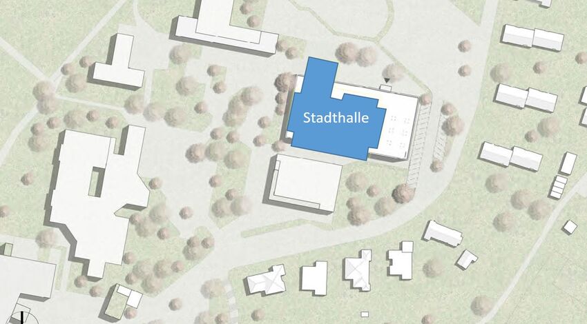 In diesem Konzept wurde der Standort Stadthalle bereits untersucht und aus guten Gründen verworfen. Dieser Standort würde mehr Grundfläche als die heutige Stadthalle benötigen, da die Grundfläche einer 3+1-Halle deutlich größer ist. Zudem legt SportConcept dar, welche zukünftigen Gestaltungsräume mit dem Bau der Sporthalle in den Hang möglich sind.