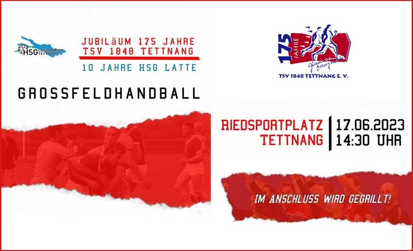 Einmalig und nur im Jubiläumsjahr gibt es auf dem Riedsportgelände am 17.06.2023 ab 14:30 Uhr drei Spiele im Feldhandball. Wir freuen uns auf Deinen Besuch dieser besonderen Art Handball unter freiem Himmel und auf Rasen zu spielen.