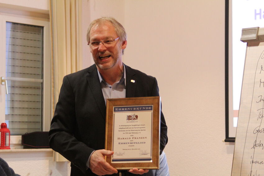 - Harald Franzen wurde für sein außerordentliches Engagement seit 1996 als Abteilungsleiter Turnen, dann der Wechsel 2013 als Vorstand und Geschäftsführer des TSV Tettnang und die damit vielen verbunden Projekte im TSV, mit der Stadt Tettnang und dem Sportkreis Bodensee zum Ehrenmitglied des TSV 1848 Tettnang e. V. ernannt.