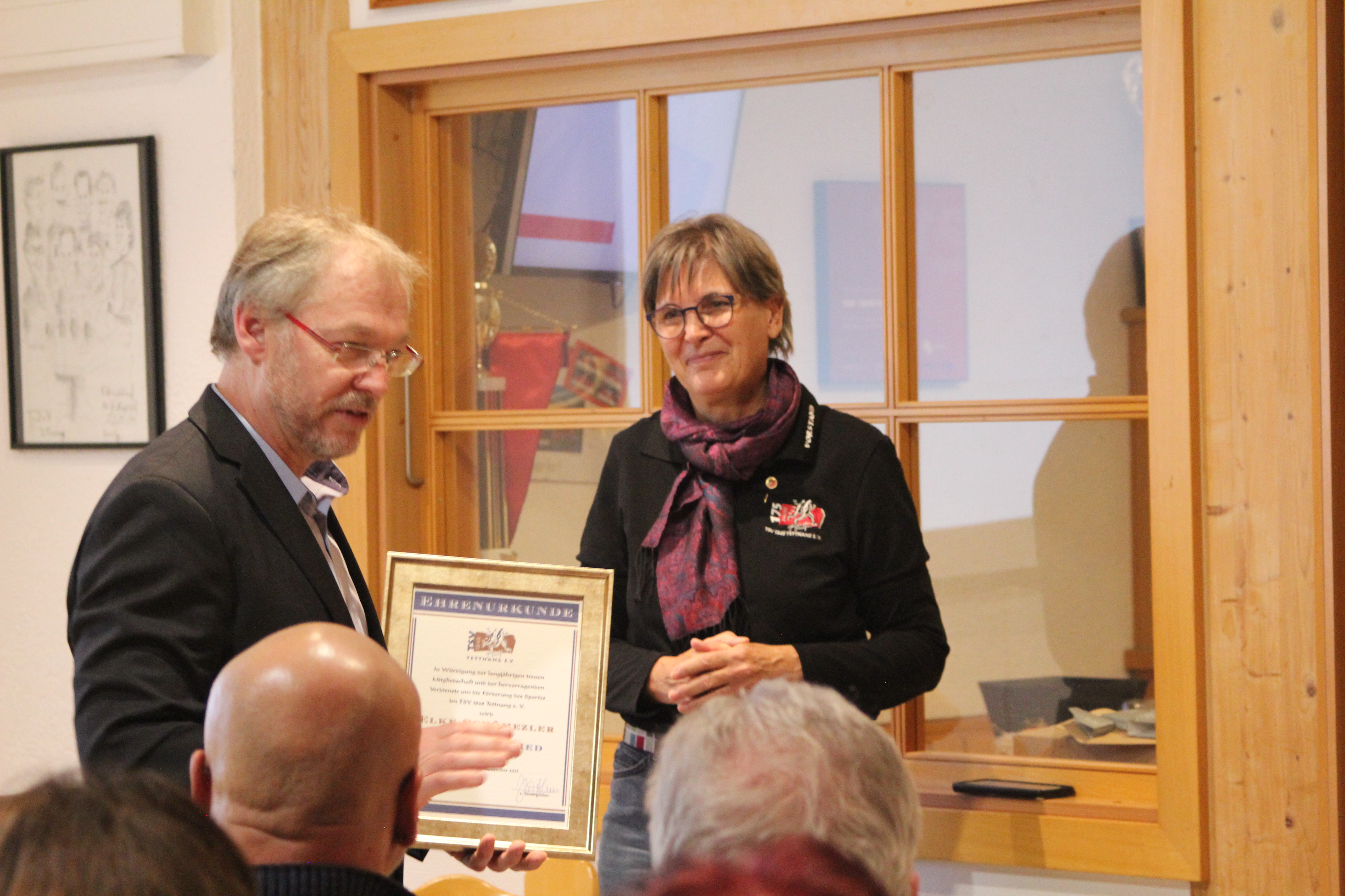 Für diese außerordentliche Leistung im und für den Sport im TSV Tettnang wurde Elke Schömezler zusätzlich zum Ehrenmitglied des TSV 1848 Tettnang e. V. von Harald Franzen ernannt.