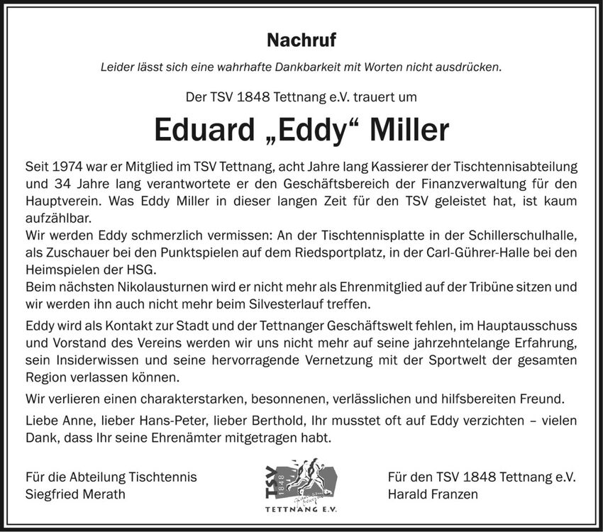 Nachruf für Eduard "Eddy" Miller