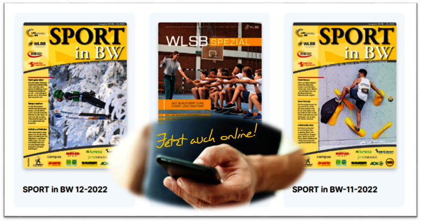 SPORT in BW und WLSB Spezial steht zusätzlich zur gedruckten Ausgabe auch als E-Paper zur Verfügung. Im Online-Kiosk der Plattform „Publishing One" kann von jedem Endgerät aus ohne Login digital geblättert werden. Jeweils zum 3. des Monats erscheint die aktuelle Ausgabe SPORT in BW. Das Themenheft „WLSB Spezial" erscheint einmal je Quartal und wird ebenfalls digital veröffentlicht.