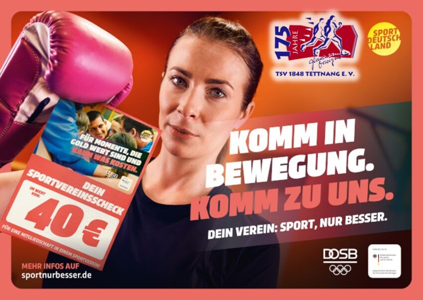 An der zeitlich befristeten Kampange KOMM IN BEWEGUNG - KOMM ZU UNS des DOSB in Zusammenarbeit mit der Bundesregierung beteiligt sich der TSV 1848 Tettnang e. V.