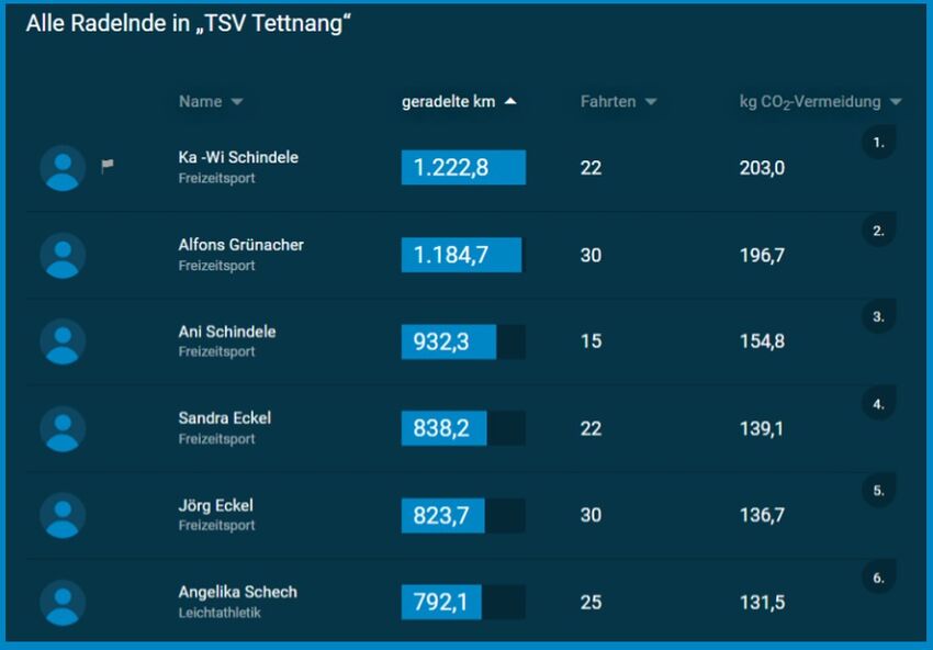 Ka-Wi Schindele hat wieder die Teams für den TSV eingerichtet und 40 Personen aus dem TSV zum Mitmachen aktivieren können. Viele TSV'ler sind natürlich auch für ihre Unternehmen und ihre Schule gefahren. Wichtig ist es mit zu machen und etwas Gutes für unsere Stadt und das Klima zu leisten.