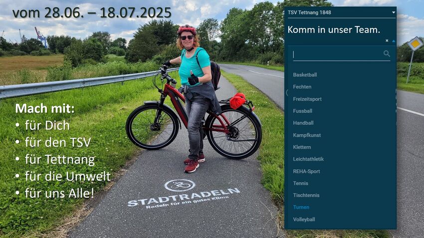 Das STADTRADELN startet am 28. Juni und läuft bis zum 18. Juli. Unser Gesamtteamleader Kawi Schindele hat den TSV mit seinen 13 Abteilungen bei Stadtradeln wieder eingerichtet.