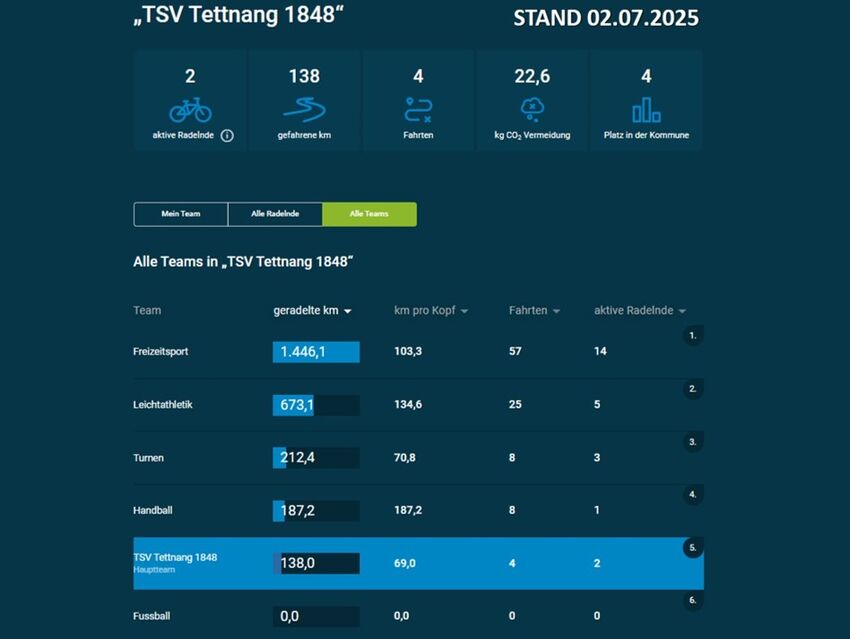 Das STADTRADELN ist am 28. Juni gestartet und läuft bis zum 18. Juli. Unser Gesamtteamleader Kawi Schindele hat den TSV mit seinen 13 Abteilungen bei Stadtradeln wieder eingerichtet.