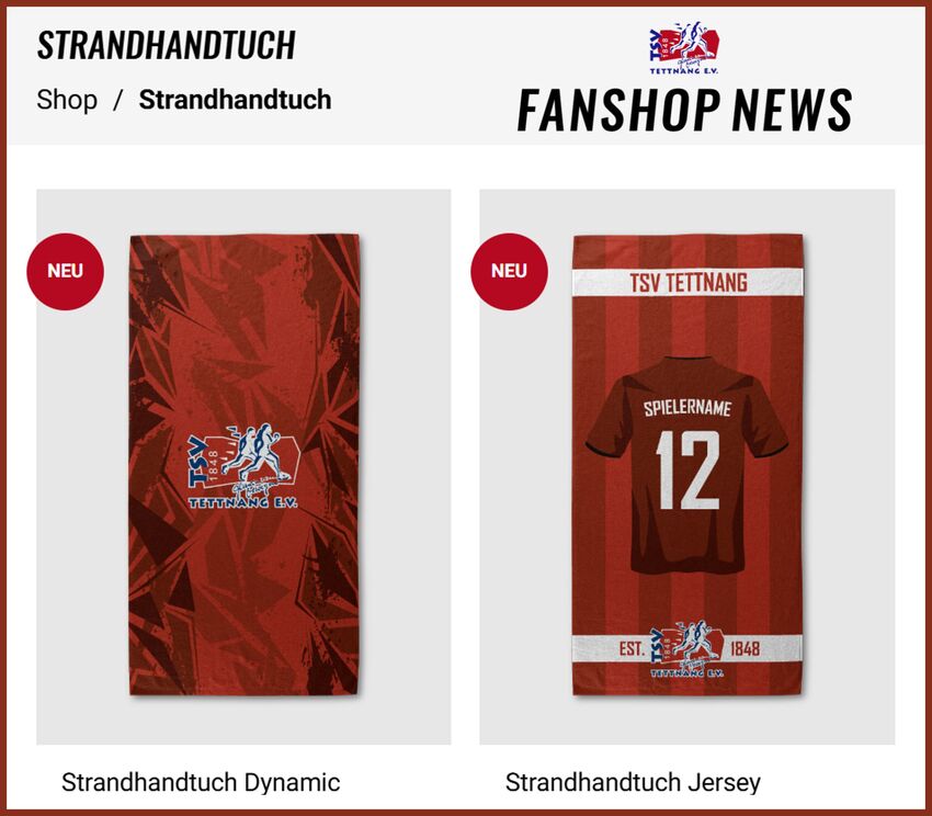 Es gibt immer neue Produkte in unserem FANSHOP - dieses mal ein tolles Stand BADEHANDTUCH.